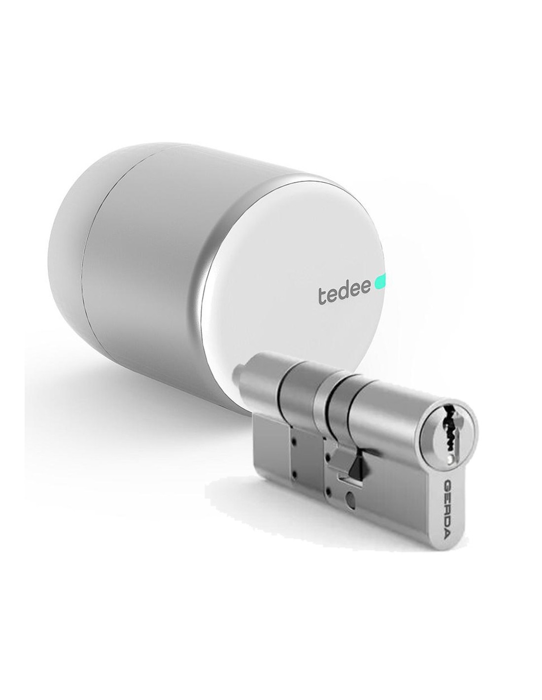 Cerradura inteligente Tedee PRO para acceso sin llave + Cilindro Bombillo Gerda de Doble Embrague | Desbloqueo con APP manos libres y automático. Aluminio | Historial. Gestión remota (con Bridge Tedee). Accesos compartido | Compatible sistemas domóticos y voz. Apple Home | El bombillo incluye 3 llaves. En el exterior permite el desbloqueo con una llave tradicional. | Amplia gama de ajustes de longitud.