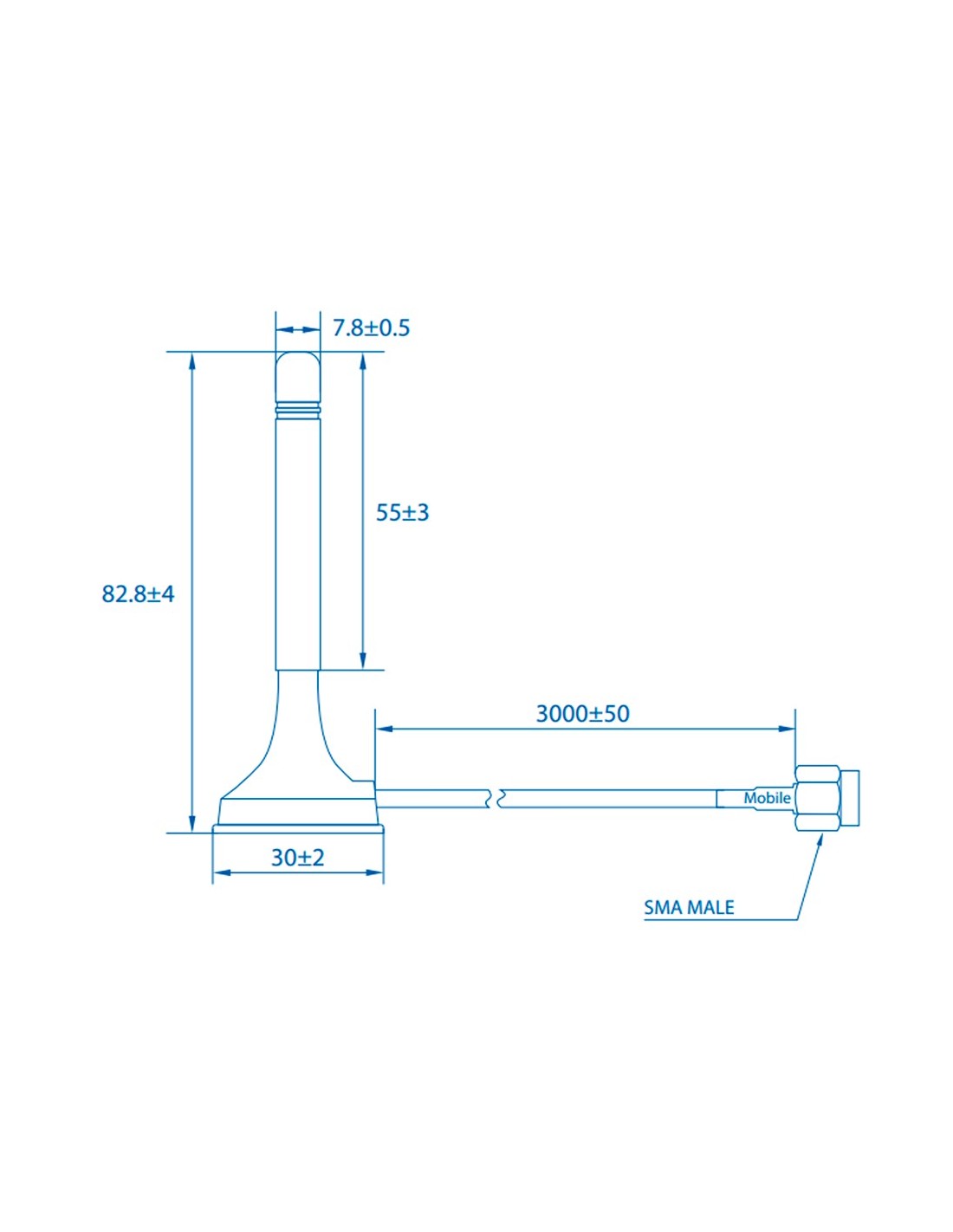 Teltonika - Antena Magnética 4G - Frecuencia 699~868 y 1850~2690 MHz - Conector SMA Macho - Impedancia 50 ohmios - Cable RG174 3 metros de longitud