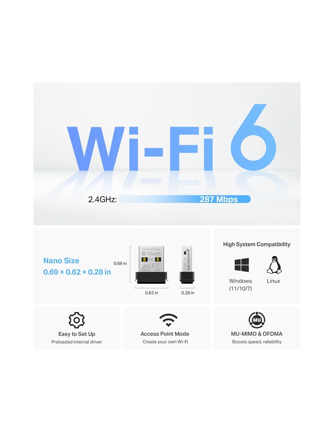 TP-LINK 1406604 ARCHER TX1U NANO TP-Link AX300 WLAN 287 Mbit/s