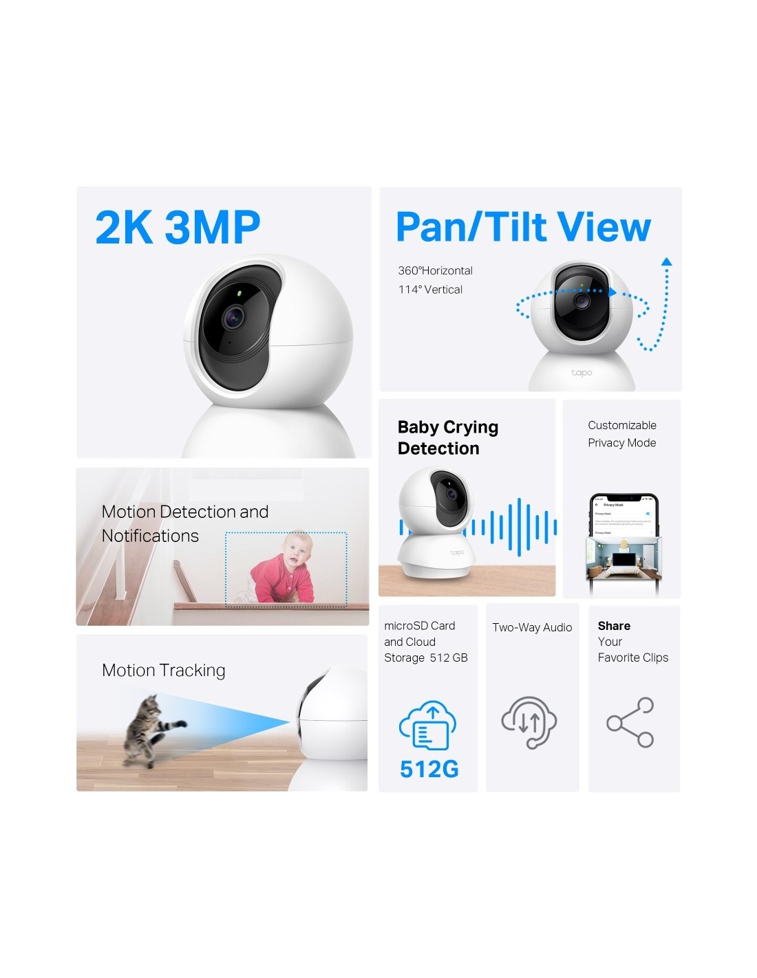 TP-LINK 1406605 TC71(2-PACK) TP-Link TC71 Almohadilla Cámara de seguridad IP Interior 2304 x 1296 Pixeles Escritorio