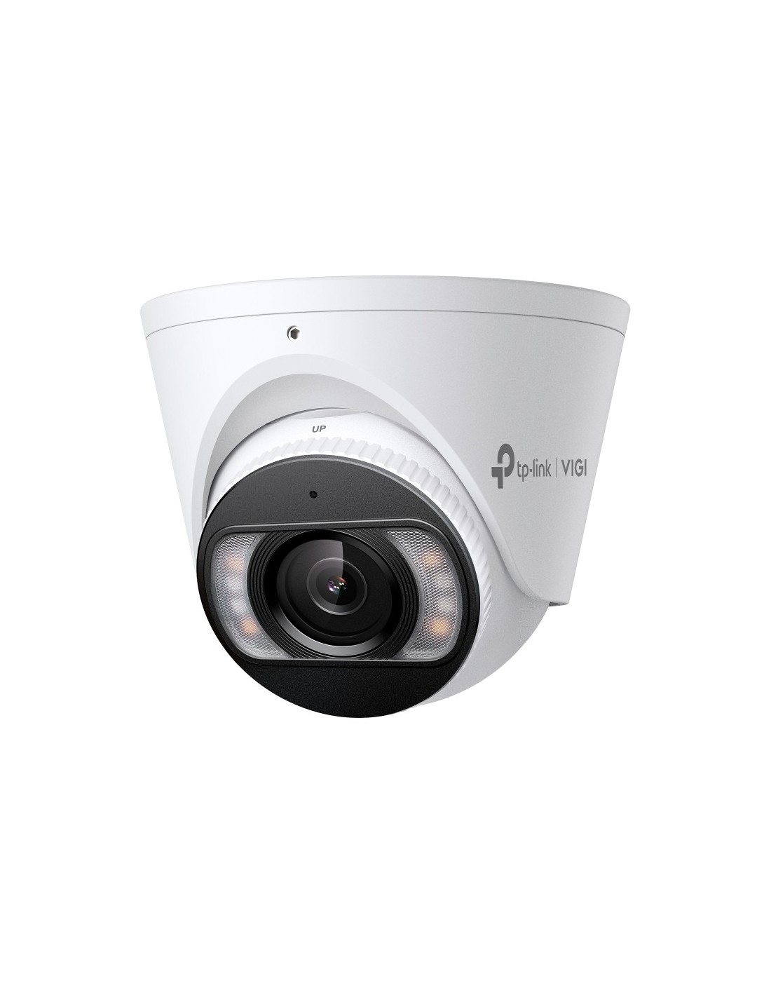 Domo IP TP-Link VIGI 5MP@30ips. Óptica fija 2,8 mm. 0,005 lux. WDR 120 dB, BLC, HLC, 3D DNR. Disuasión activa con luz blanca intermitente y audio. Detección de personas y vehículos. Micrófono y altavoz integrados. Ranura MicroSD. Protección IP67. PoE