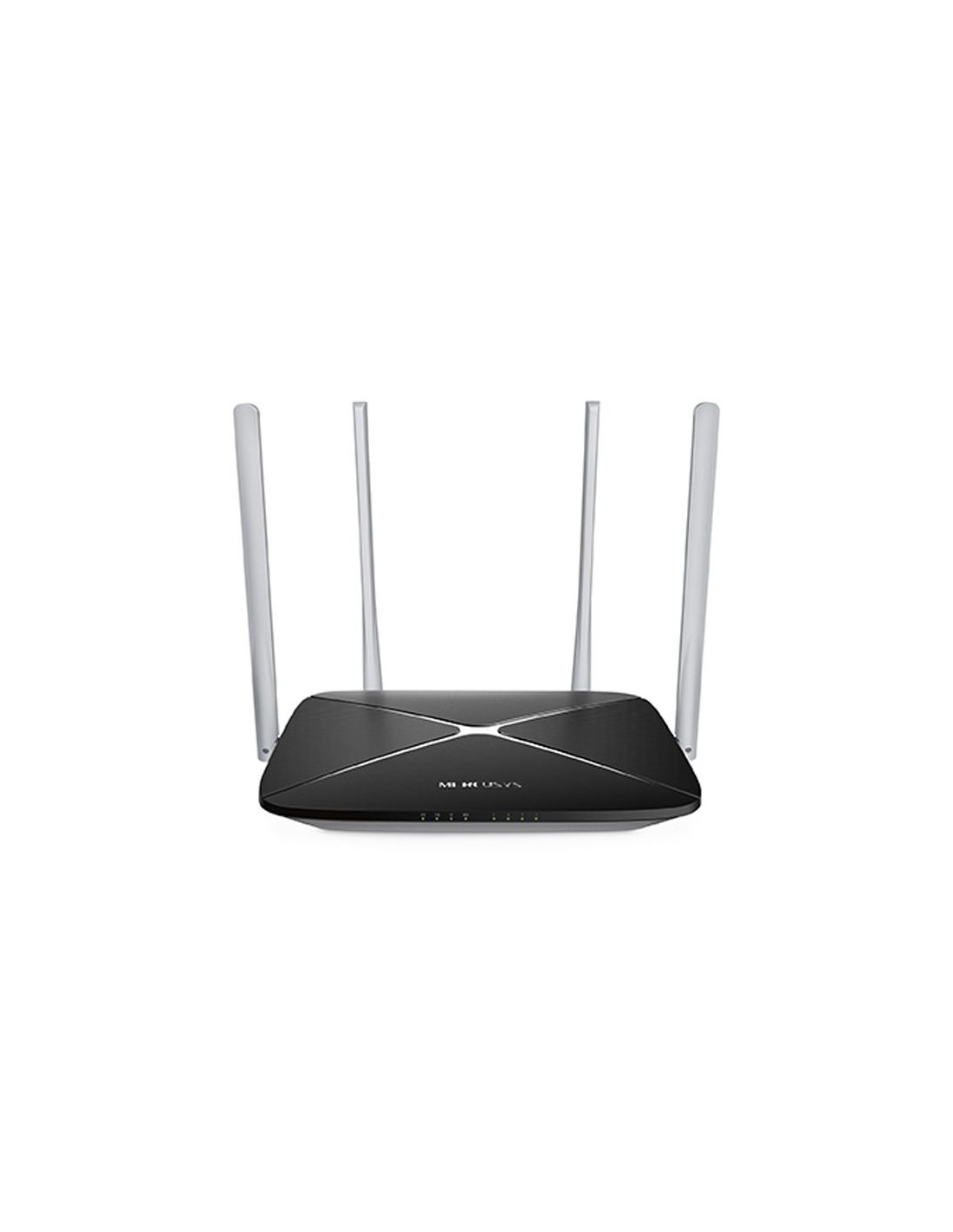 Router Mercusys AC1200 Wi-Fi 5. Velocidad combinada hasta 1,2 Gbps. Banda dual 2,4/5 GHz. 1 puerto WAN + 3 LAN Fast Ethernet. 4 antenas de 5 dBi. WPA2, red de invitados, control parental. Instalación rápida. Gestión remota y local