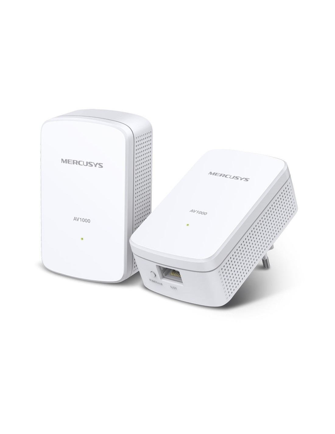 Kit Powerline Mercusys AV1000 compuesto por 2 adaptadores MP500. Transmisión de datos de hasta 1000 Mbps sobre red eléctrica. 1 puerto Gigabit por unidad. Encriptación AES de 128 bits. Alcance hasta 300 m. Compatible con HomePlug AV/AV2. Ahorro energético hasta 85?%. Plug & Play