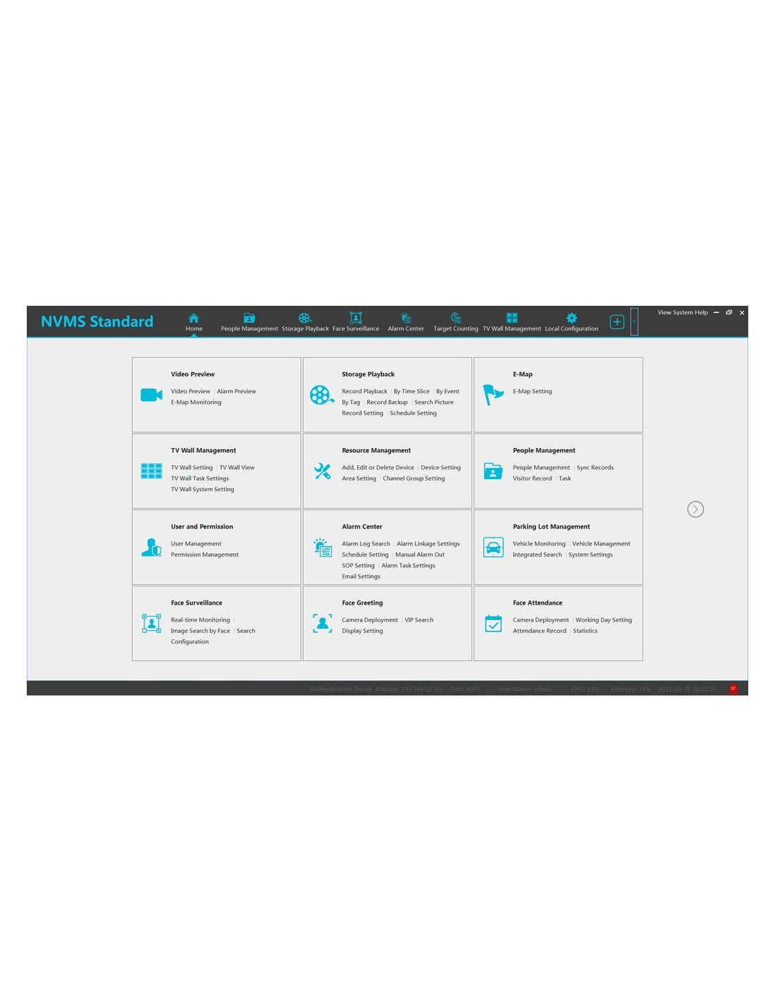 200 Licencias extra Software estándar gestión de seguridad integrada NVMS2.1.2 TVT | Gestión videovigilancia. Acceso a los productos TVT | Vista previa tiempo real. Vinculación de alarmas | Almacenamiento y reproducción de registros | Decodificación videowall. Control teclado | Administración de E/S de vehículos. Análisis inteligente