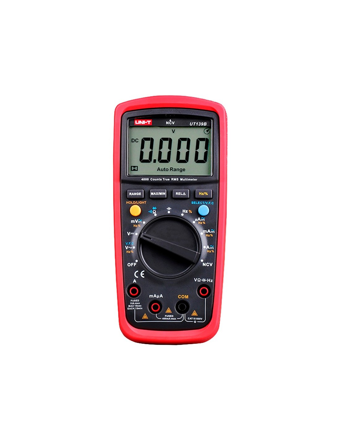 UNI-TREND UT139B Multímetro digital con función True RMS - Medición de voltaje en DC y AC hasta 600V - Medición de intensidad en