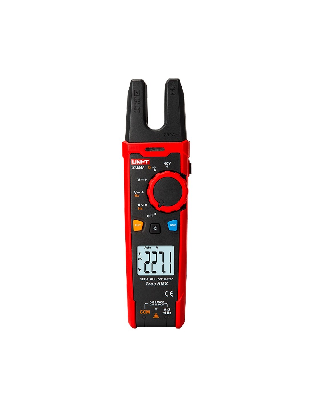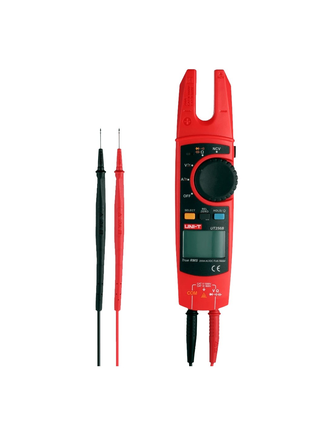 UNI-TREND UT256A Pinza amperimétrica tipo tenedor - Pantalla LCD de hasta 6000 cuentas - Medición de intensidad en AC hasta 200A