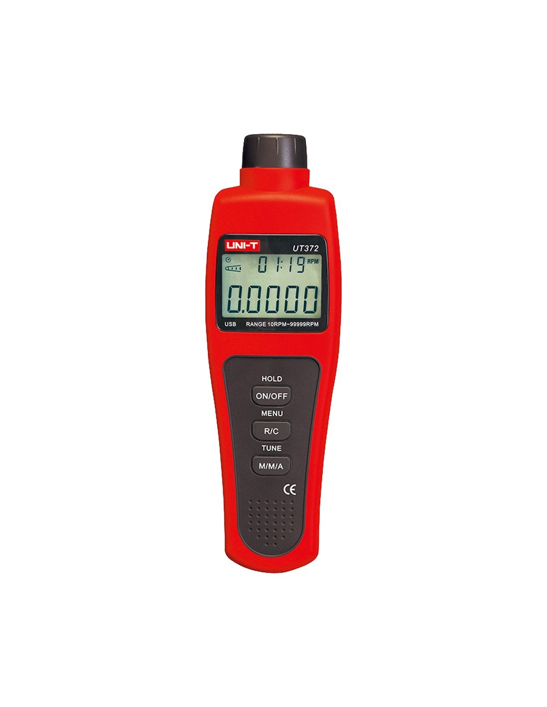 UNI-TREND UT372 Tacómetro digital de mano - Hasta 99999 RPM - Display LCD retroiluminado de 100000 cuentas - Conexión con PC med