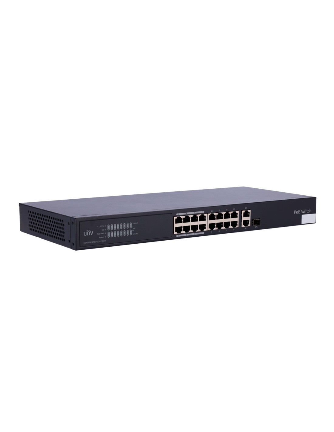 Uniview Switch PoE Cloud Gestionable Capa 2 - 16 PoE802.3af/at + 1 uplink RJ45 +1 uplink Combo - 16 RJ45 10/100 Mbps + 1 SFP 10/100/1000 - 30W por puerto 802.3af/at / Máximo 250W - VLAN/Port Isolation/Loop Detection - Port Speed Limit