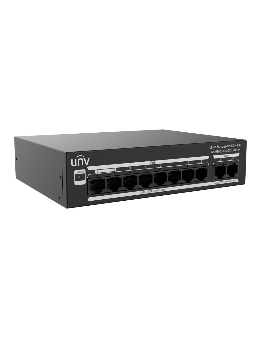 UNIVIEW UV-NSW3000-8T2GT-LPOE-IN Uniview Switch PoE Cloud Gestionable Capa 2 - 8 PoE802.3af/at + 2 uplink RJ45 - 8 RJ45 10/100 M