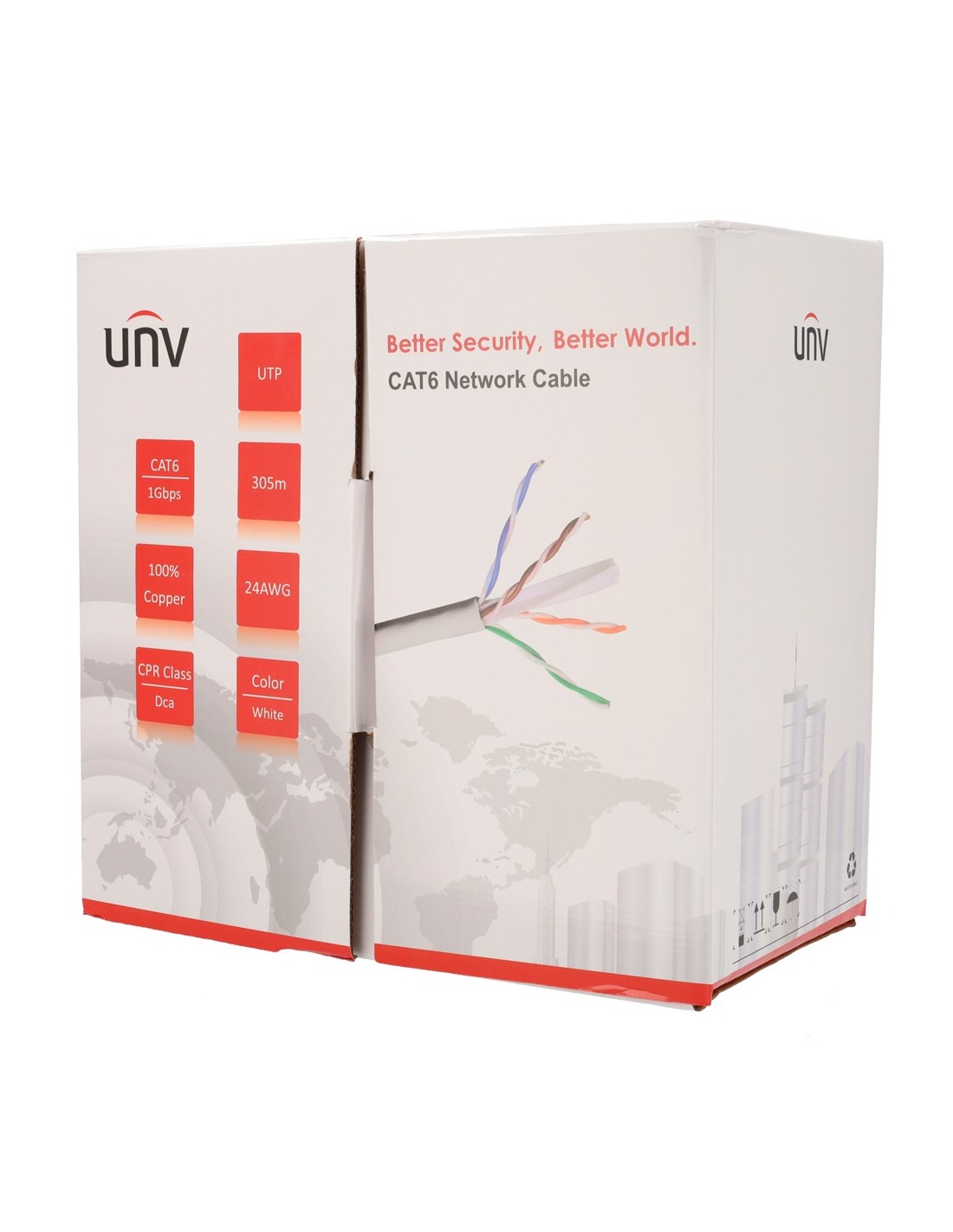 UNIVIEW UV-UTP6-500-BC24AWG-DCA-R-W Uniview cable UTP categoría 6 - Conductor OFC,100% cobre - Diámetro 24 AWG-0,53mm - Certific