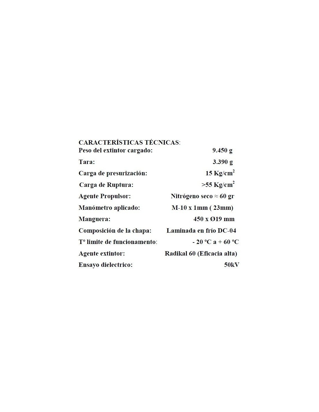 - Fuegos de clase A, B y C, fuegos eléctricos hasta 50.000V.
