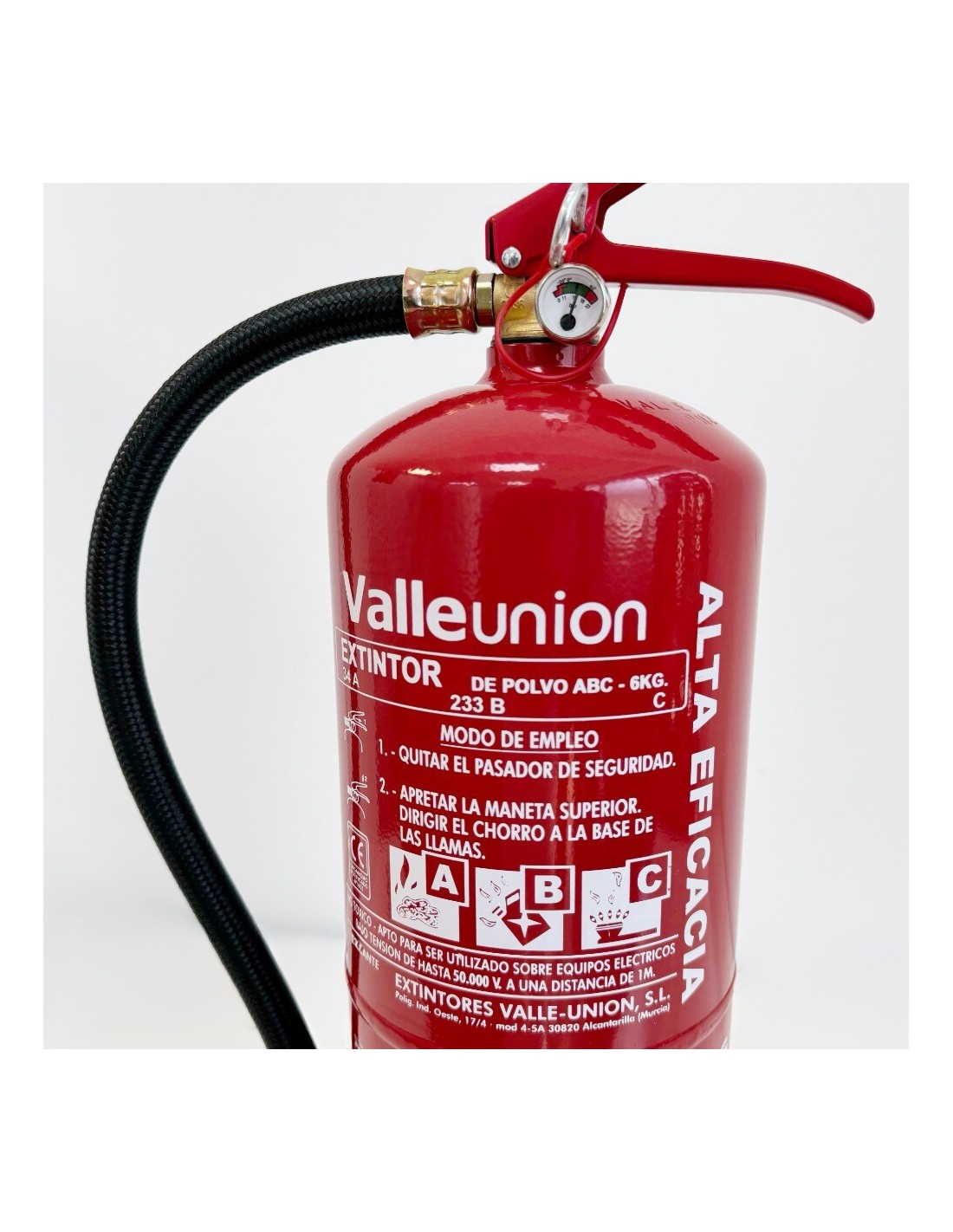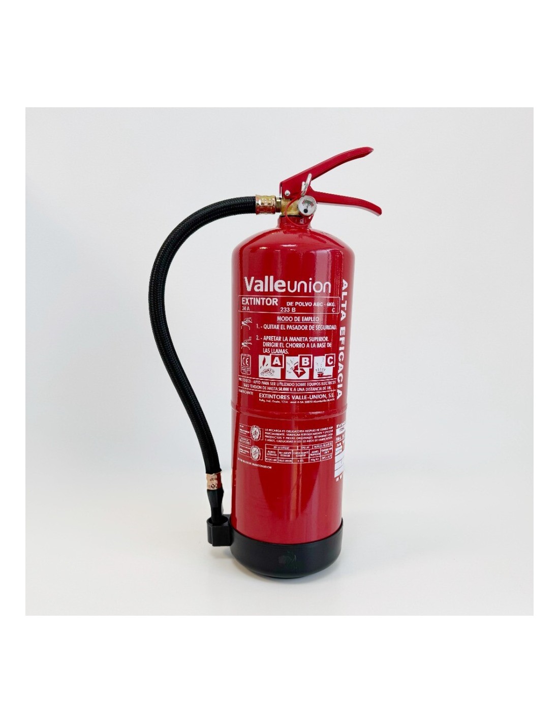 VALLEUNION VU-6-PP-AF Extintor polvo ABC 6Kg Alta Eficacia 34A233BC con soporte y base plástico. Certificado, homologado y CE