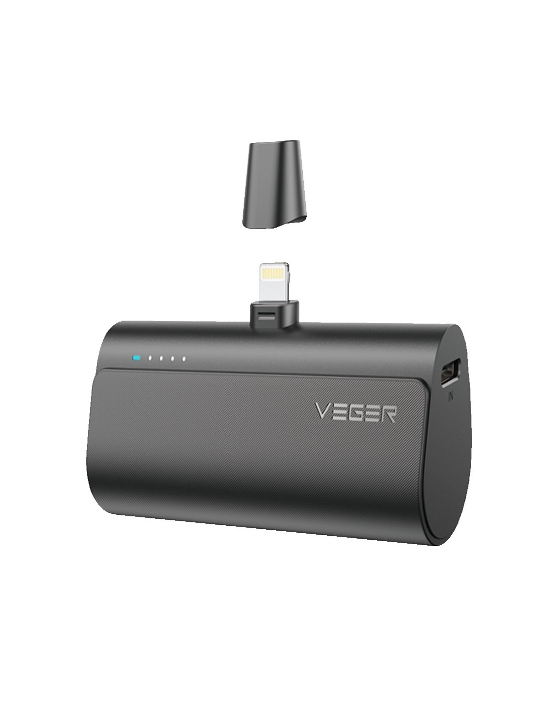 VEGER VG-W0556P VEGER Mini Power bank con LEDs carga - Capacidad 5000mAh - Entrada USB-C - Salida Conector Lightning - Carga 1 d