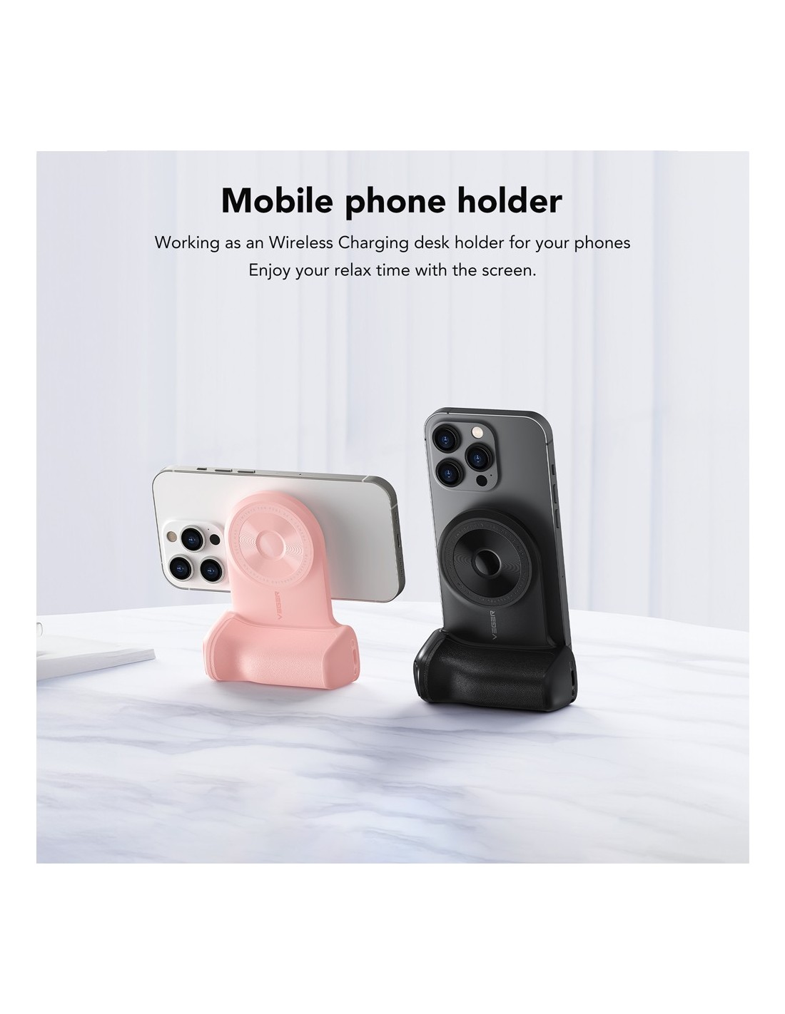 VEGER Power bank magnética inalámbrica - Capacidad 5000mAh - Entrada USB-C - Salida inalámbrica - Soporte en posición vertical y horizontal - Conexión Bluetooth con el móvil