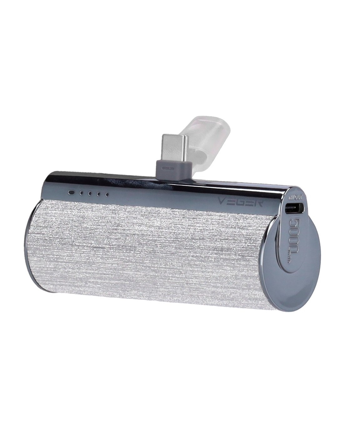 VEGER Mini Power bank con LEDs carga - Capacidad 5000mAh - Entrada USB-C - Salida USB-C, Conector USB-C - Carga 1 dispositivo - Color Plateado