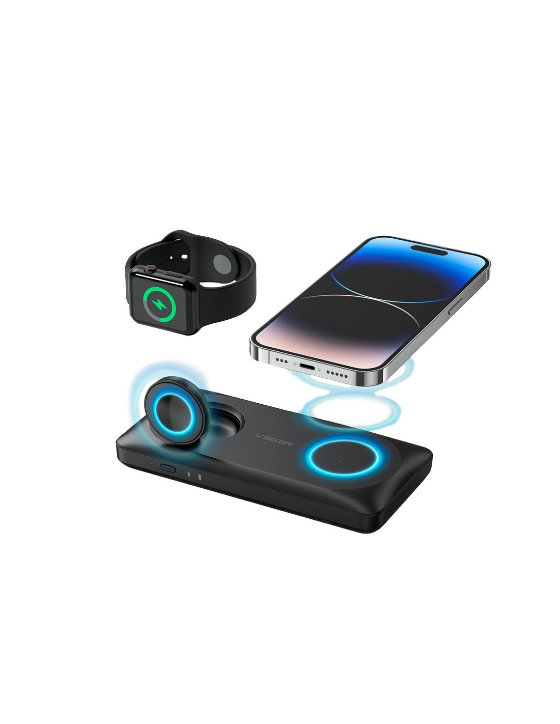 VEGER VG-W1156 VEGER Power bank magnética e inalámbrica - Capacidad 10000mAh - Entradas 2x USB-C, Lightning - Salidas USB-C, USB