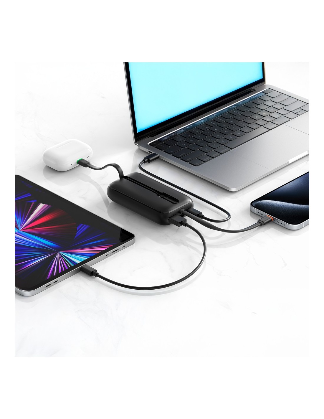 | Entradas | 1x Cable USB-C 5V-3.0A / 9V-2.5A / 12V-1.8A / 15V-1.5A (22.5W) 1x Puerto USB-C 5V-3.0A / 9V-2.5A / 12V-1.8A / 15V-1.5A (22.5W) |