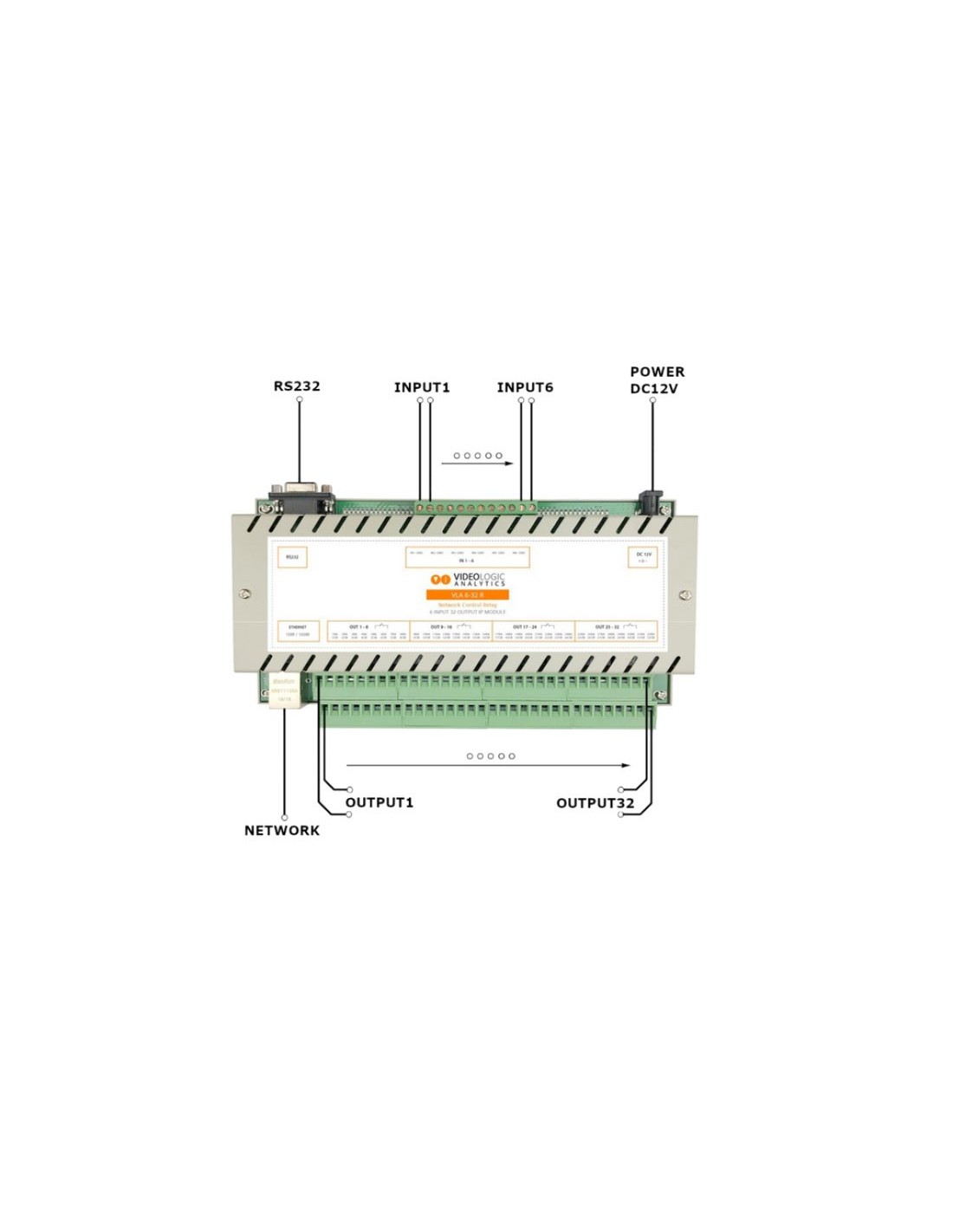 VIDEOLOGIC VIDEOLOGIC-11 VLA-IO6-32R Módulo de relés IP Videologic 6 entradas digitales + 32 salidas Relé. Incluye alimentador 1
