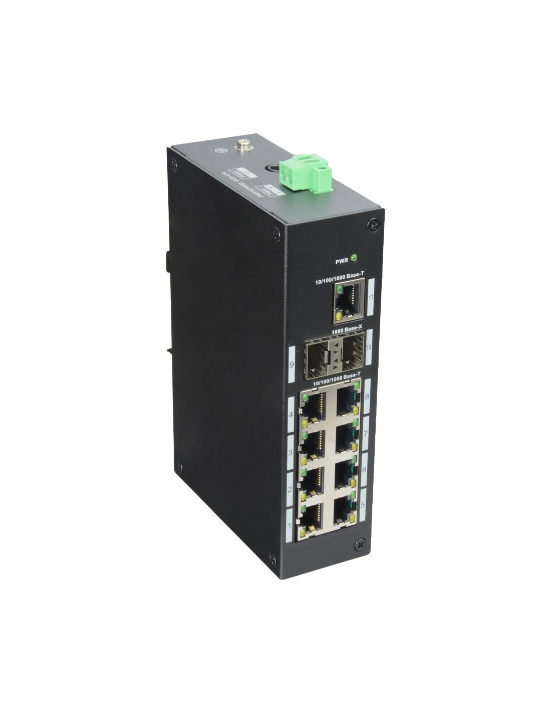Switch Industrial X-Security - 9 puertos RJ45 + 2 puerto Uplink (SFP) - Velocidad 10/100/1000 Mbps - Tecnología de ahorro de energía - Instalación en Carril DIN