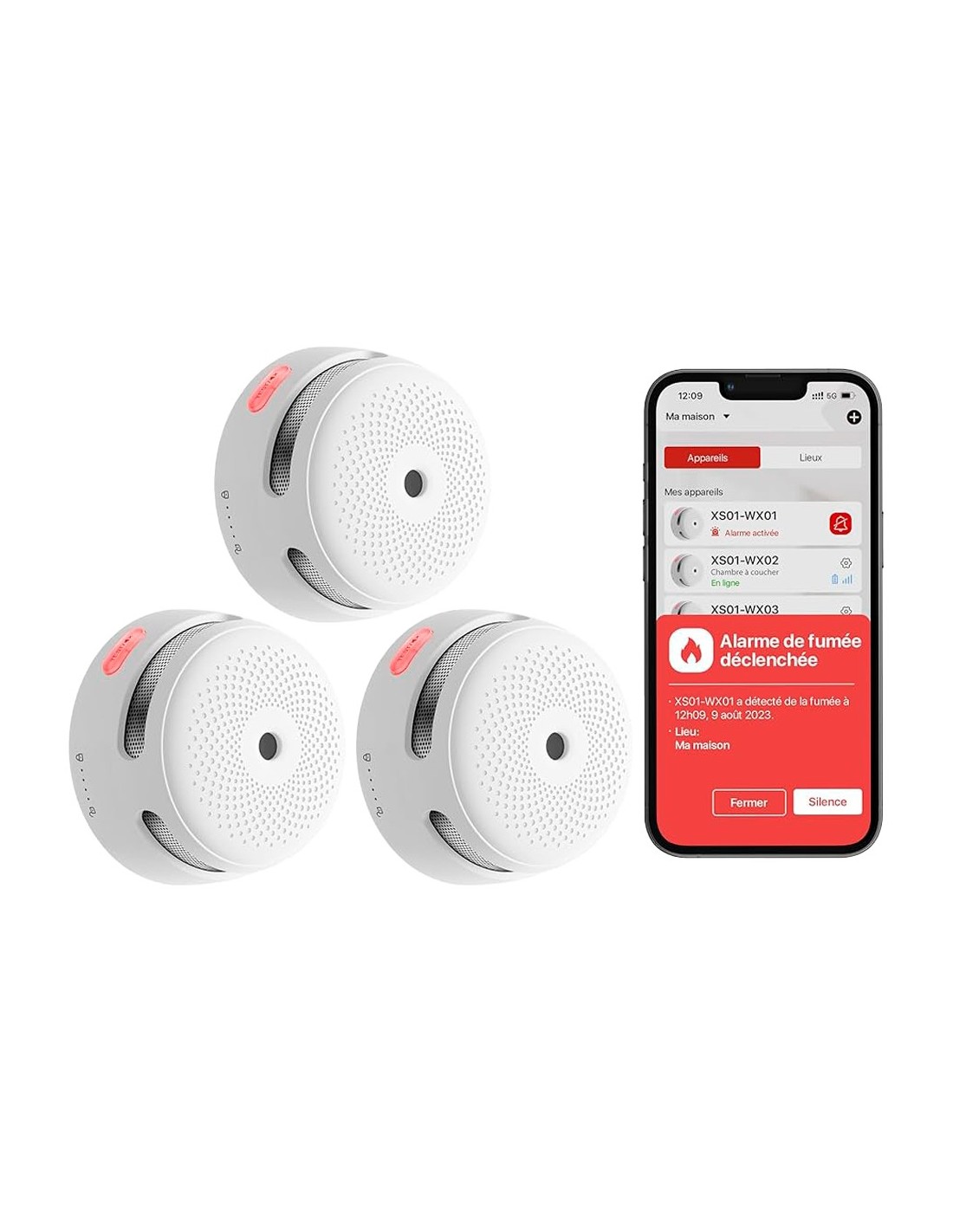 Kit de detección de incendio autónomo X-Sense - Inlcuye 12 detectores de humo XS01-M y Hub SBS50 - Conexión con HUB SBS50 para comunicación por APP - Permite conectar 50 detectores en la misma red - Alarma sonora 85 dB a 3m - Certificado EN 14604