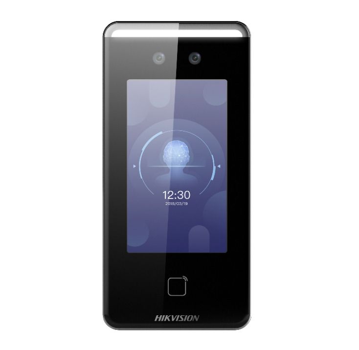 Terminal control acceso Reconocimiento facial Proximidad Mifare 4,3" 1500 caras Lector de tarjetas | Reconocimiento facial Hasta 1.500 caras. Proximidad Mifare 1.500 tarjetas. Smart Card | Pantalla táctil de 4.3".Función de videoportero. Dispone de webserver. | Controladora integrada. Protección de exterior IP65. 12 Vdc/3A. | Reconocimiento facial <0,2s Tasa precisión ≥99% | Apertura puerta remota, visualización en vivo a través de Hik-Connect