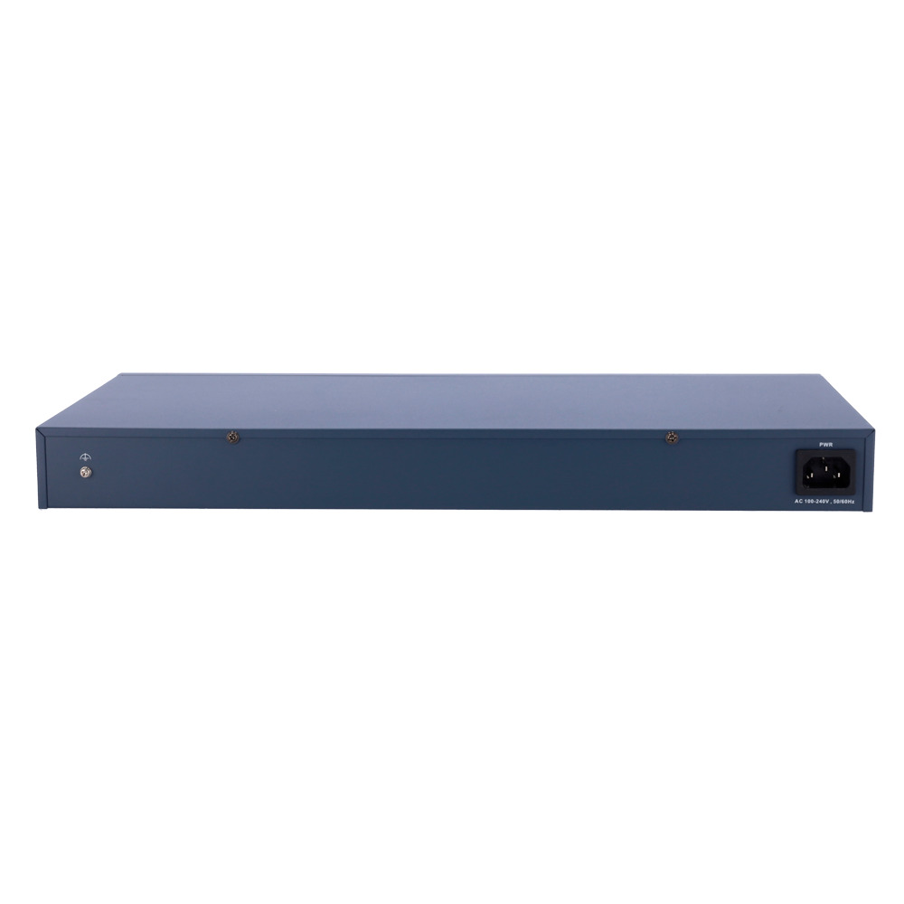 - 24 puertos RJ45 10/100/1000 Mbps PoE + 1 puerto Gigabit RJ45/SFP combo