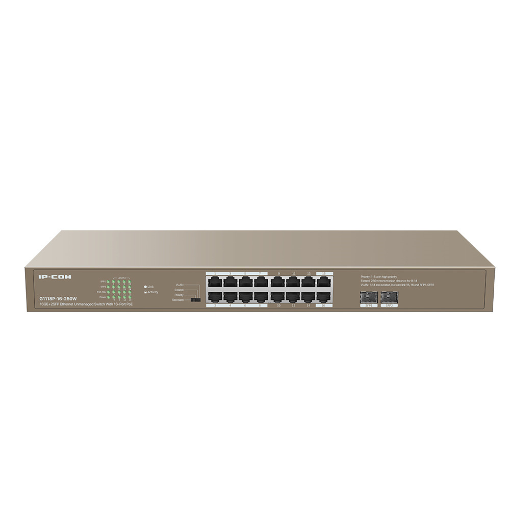 IPCOM G1118P-16-250W Switch 18 puertos no gestionado L2 16 Gigabit PoE + 2SFP Enracable 1U