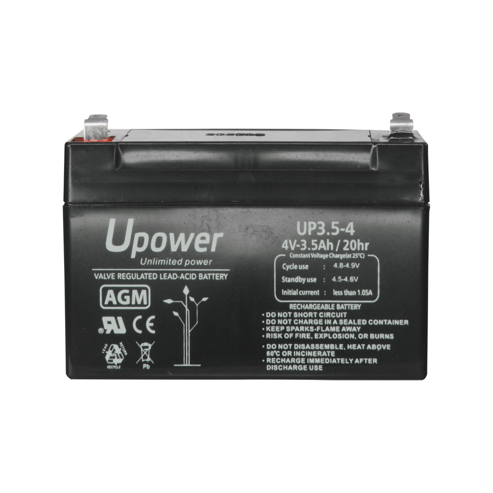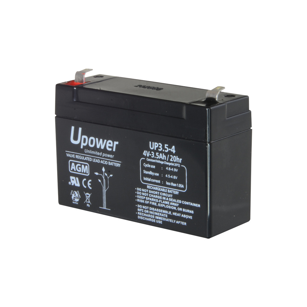 Upower - Batería recargable - Tecnología plomo ácido AGM - Voltaje 4 V - Capacidad 3.5 Ah - 65 x 90 x 34 / 420 g - Para respaldo o uso directo