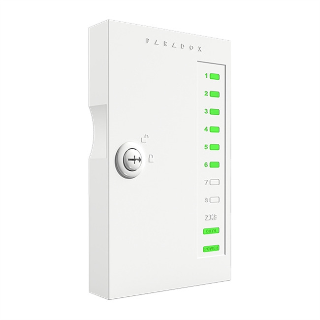 Modulo expansión de 8 zonas adicionales en caja. Grado 3. Paradox | Soporta SP, MG y EVO | 4 hilos de conexión al BUS | Leds de estado para zonas, alimentación y BUS | Caja con mecanismo de cierre | Tamper en placa. FW actualizable