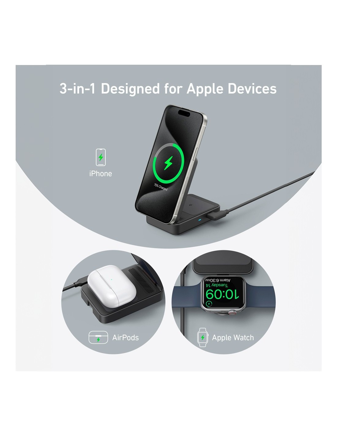 Anker Ank-2557-3-em-1-B carregador sem fio 3 em 1 Anker - Magsafe Technology - Rápido Cargo: iPhone, Airpods, Apple Watch - CA