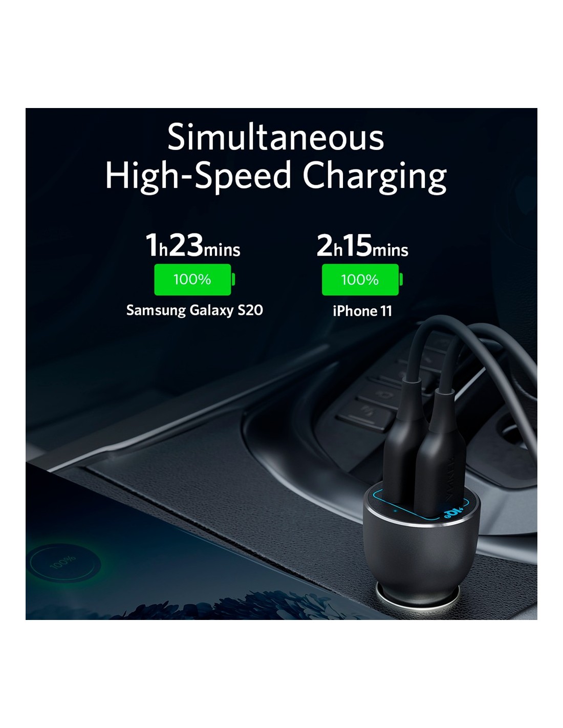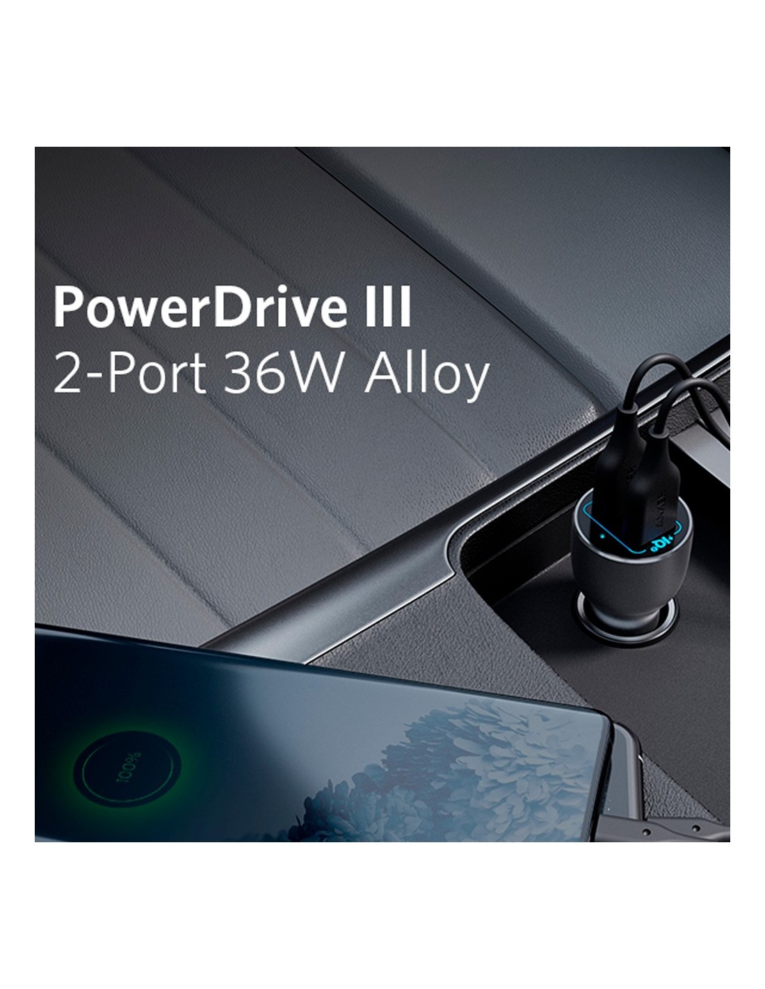 Anker Ank-Ccharger-PowerDrive3-B Anker - Carro de metal Isqueiro - 36W Power - Charge rápido 18W | Tecnologia QC3.0 - Saídas 2