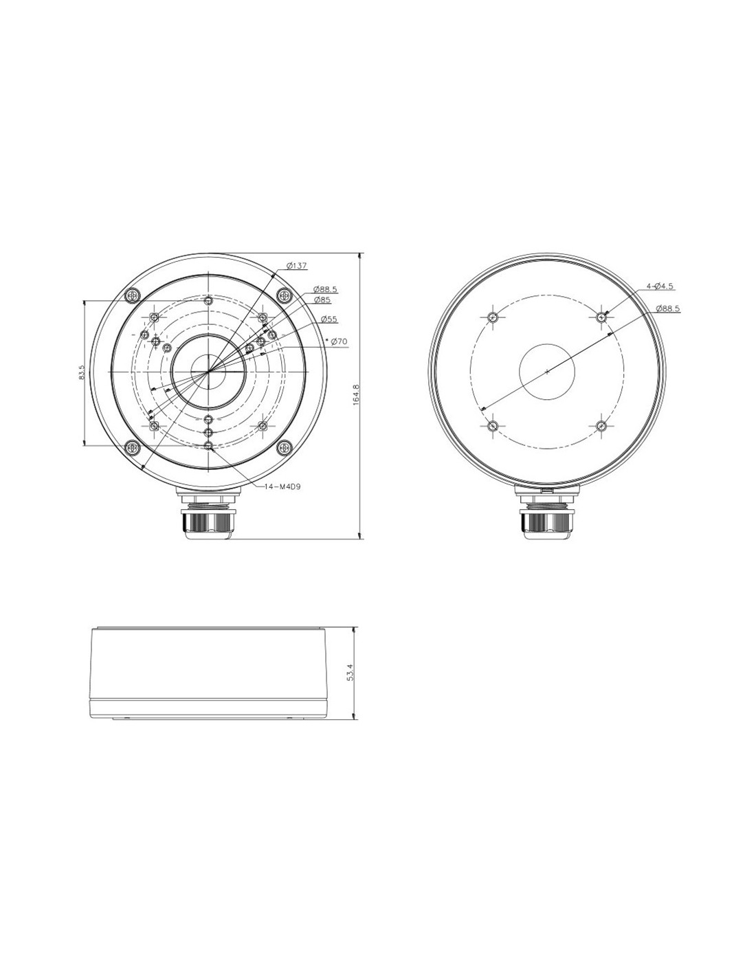Caixa de conexão Hikvision DS-1280ZJ-S-Black - para câmeras de cúpula ou bala - adequado para uso externo - instalação de teto o