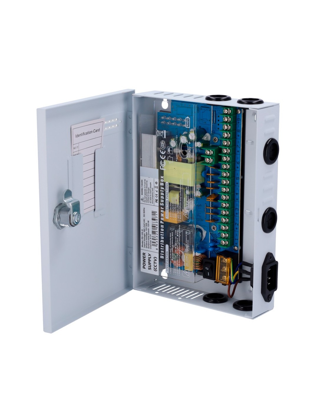 Caixa de distribuição de energia OEM PD-120-9-Fusível - 1 entrada CA 180-246 V 50-60Hz - 9 Saídas de par de cobre - Protegido