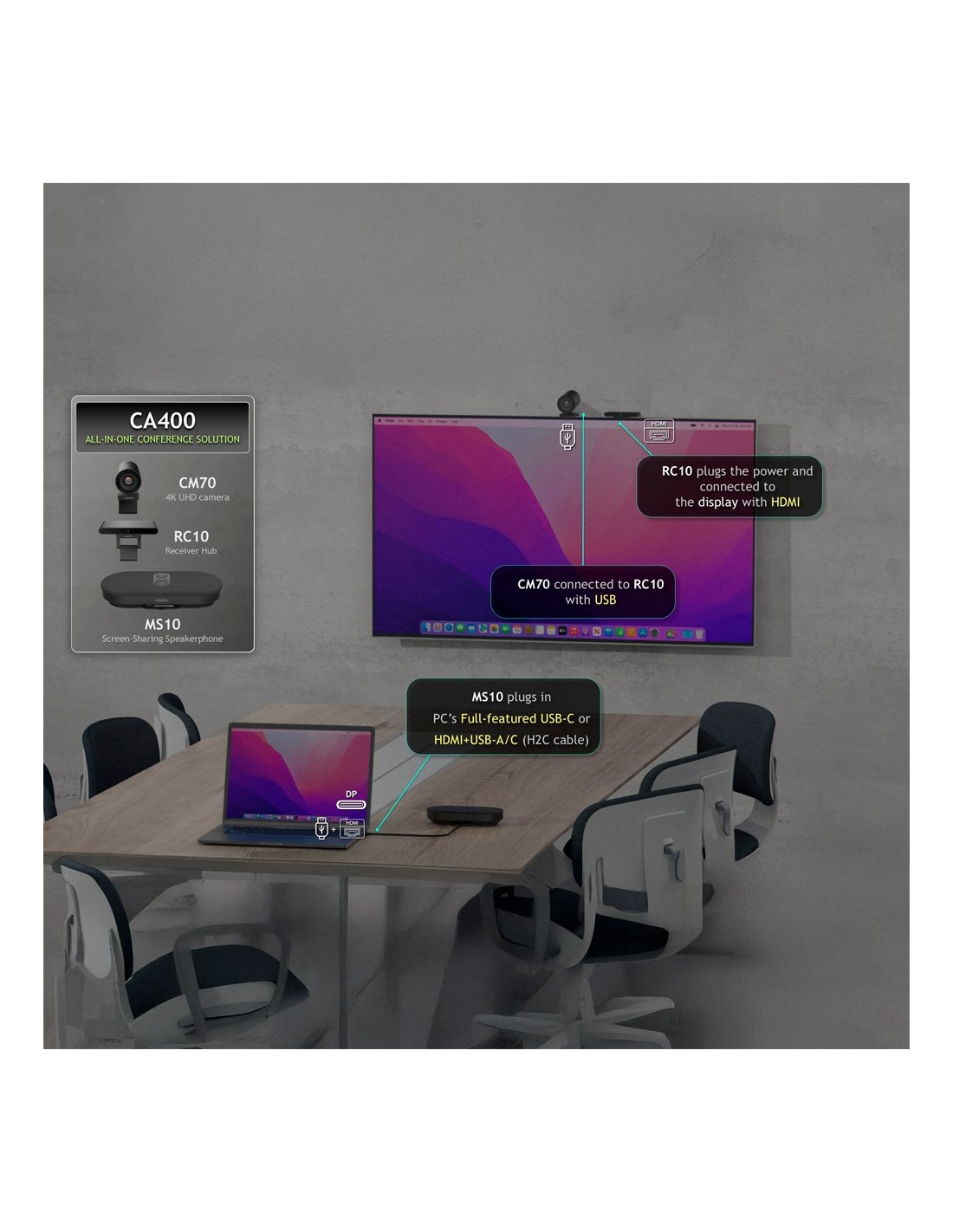 Câmera CA400 OEM 4K - Alto-falante de microfone - Receptor - Transmissão de tela sem fio - plug and play - para quartos até 2