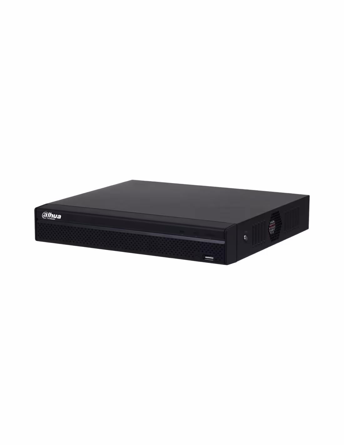 NVR IP Dahua Lite de 8 canais. Smart H.265+. 80/60Mbps de entrada/saída. Saídas HDMI e VGA (1080P) simultâneas. Áudio bidirecional. Suporta 1 HDD SATA. 1 RJ45, 2 USB, 53V CC, 8 portas PoE