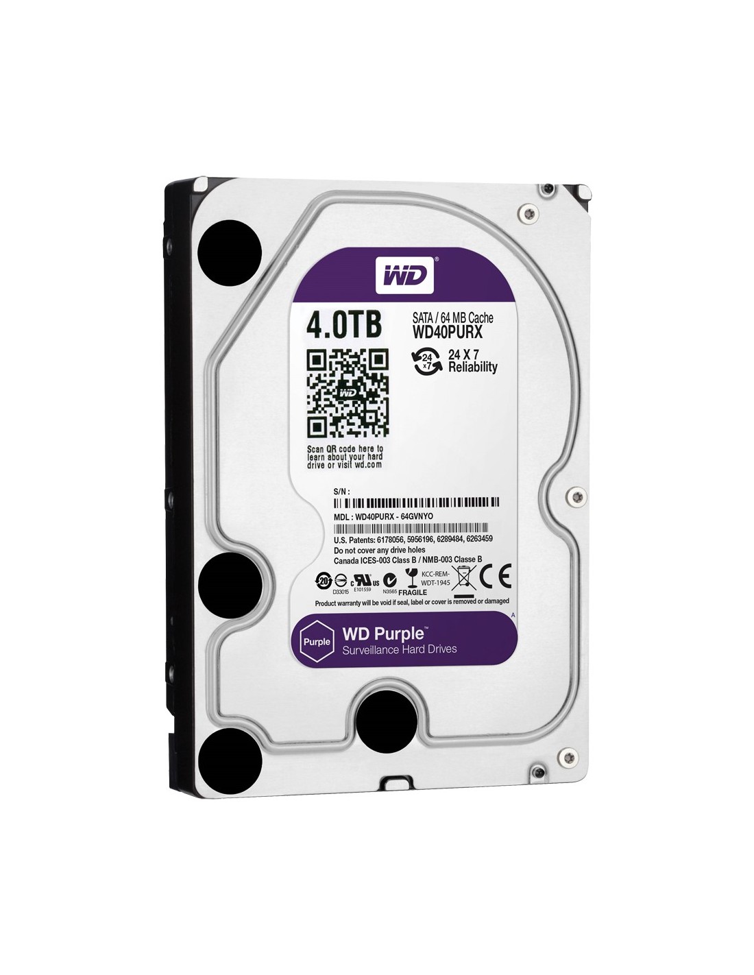 Dígide Digital Ocidental HD4TB Digital Digital Western - Capacidade 4 TB - Interface SATA até 175 MB / S - modelo WD43Purz - PA