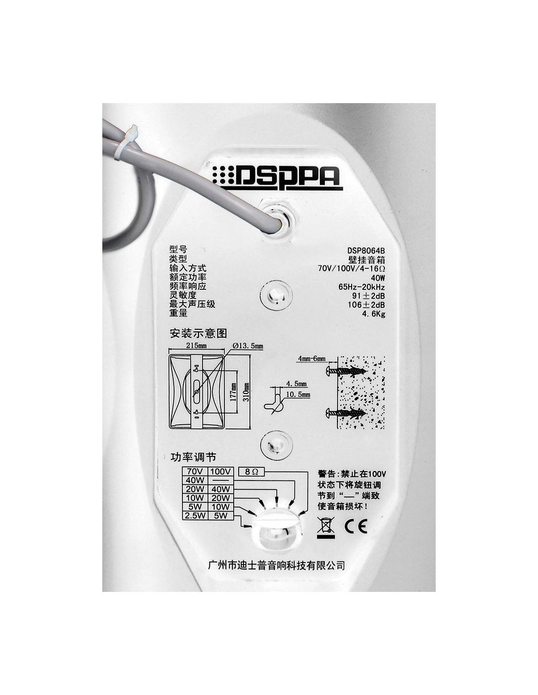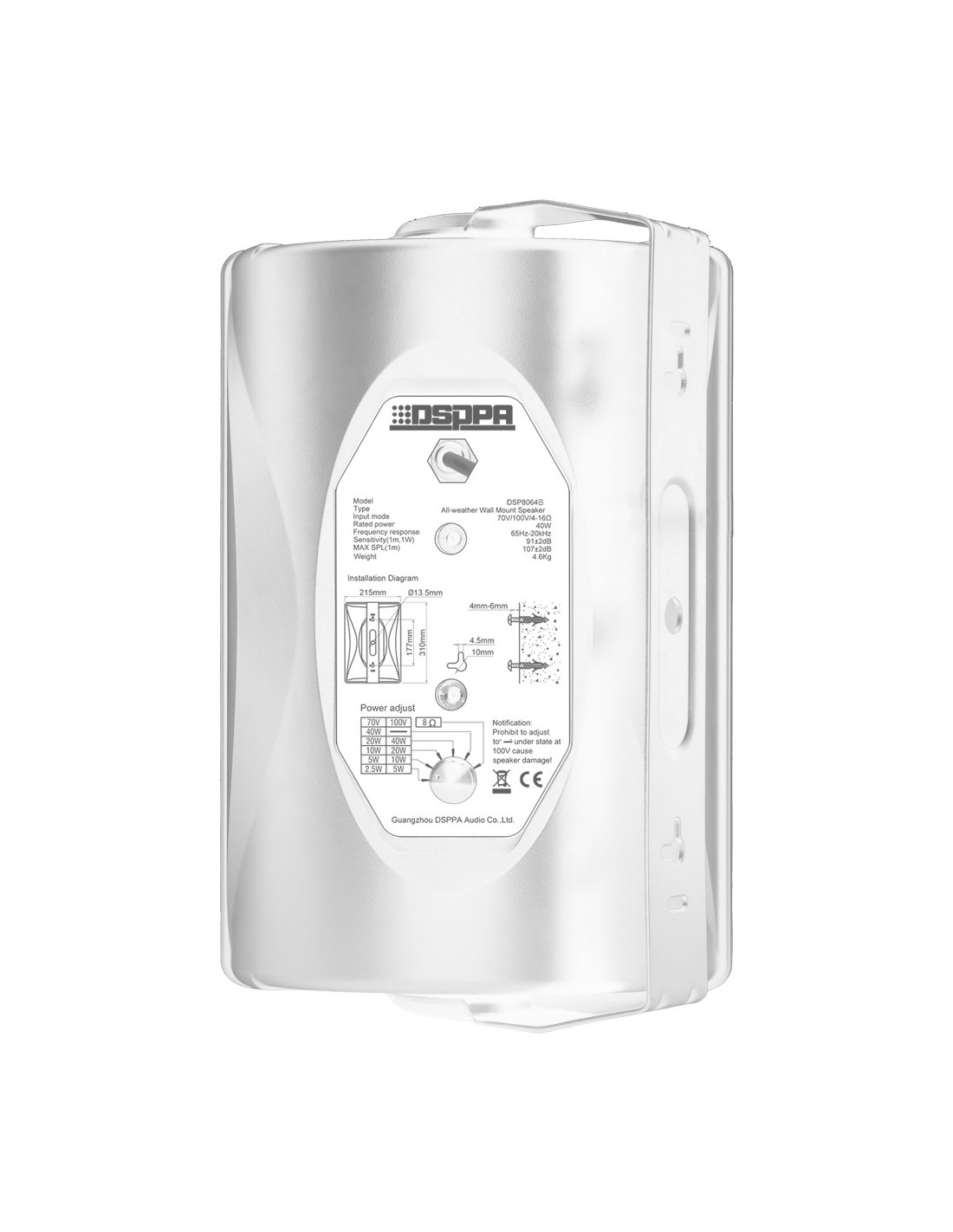 DSPPA DSPPA-DSP8064W Speaker Telhado - Orador de Classificação Completa 1x6.5 & OT + 1X1 & OT POWER 70V / 100V - Sensibilidade 9