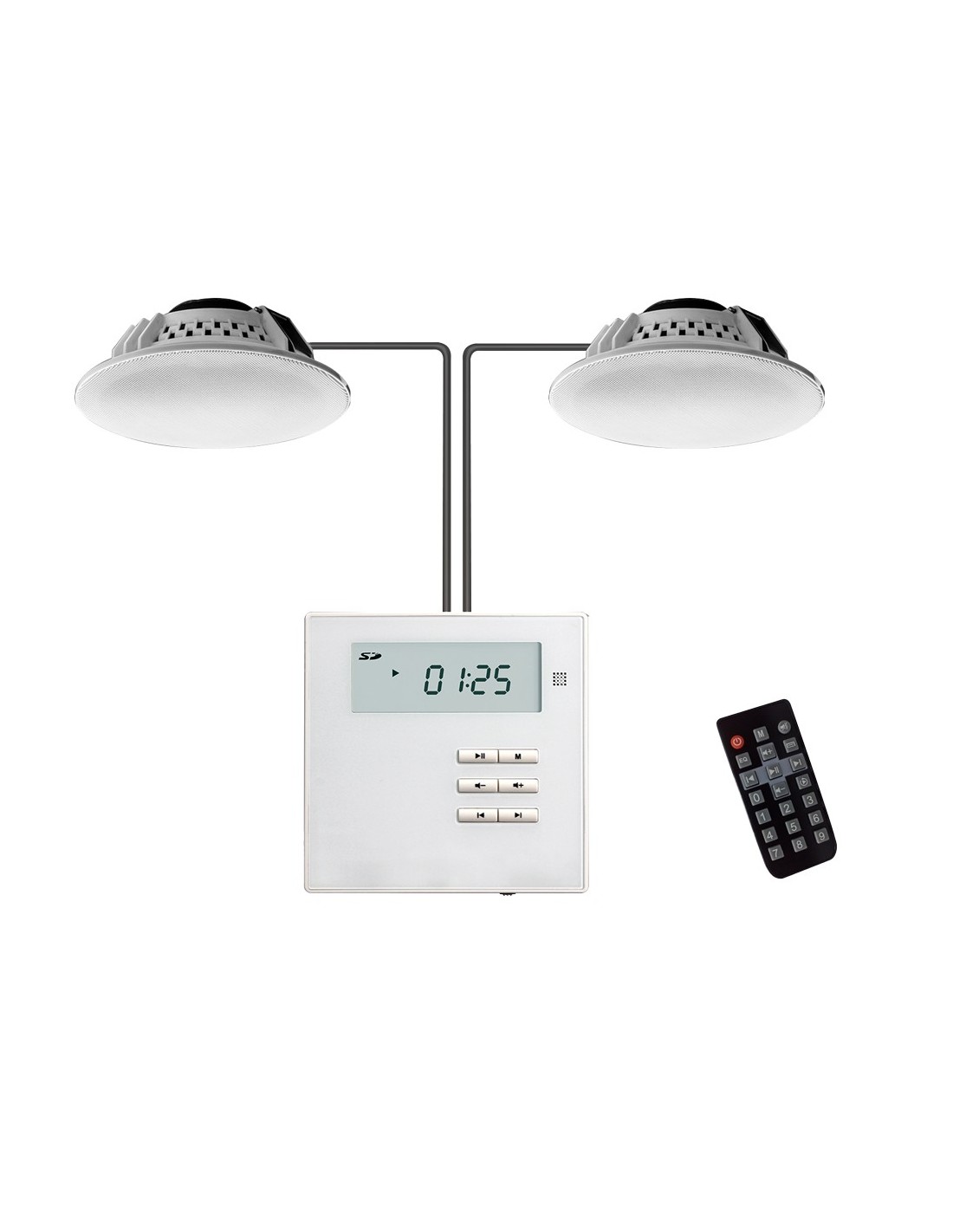 DSPPA DSPPA-M2U 2 x 2x10W Alto-falantes de teto - Amplificador de parede - Reprodução via BT, FM, SD, USB, AUX - Controle Remoto