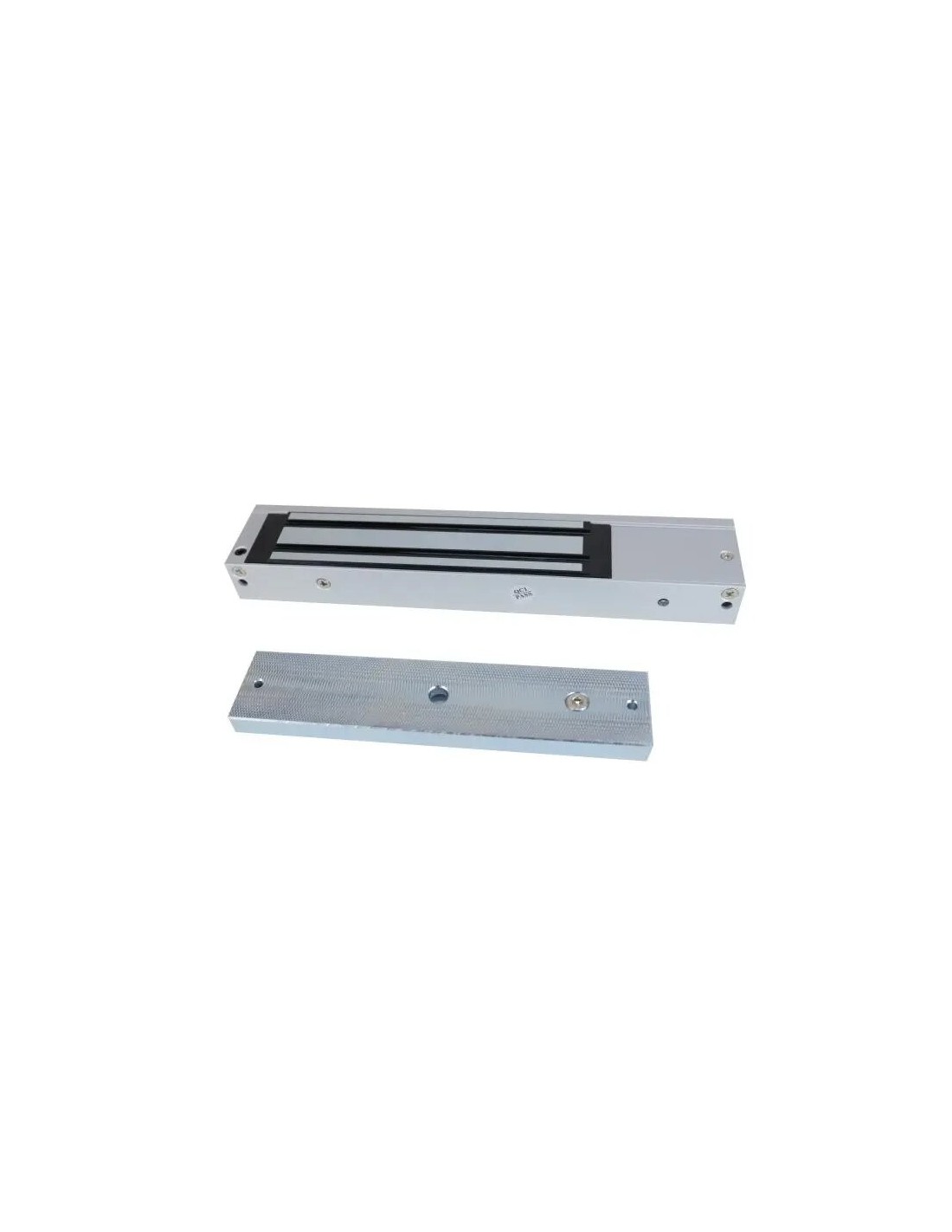 Fechadura magnética para todo o tipo de portas | Força máxima da fechadura: 272 kg | Magnetismo anti-residual. Fonte de alimentação 12 V CC ou 24 V CC | Estrutura em alumínio anodizado. Resistente à abrasão | Dimensões: corpo 250×28×48 mm. Placa 180×38×12 mm. Peso: 1,9 kg | Método de desbloqueio: interrupção da corrente