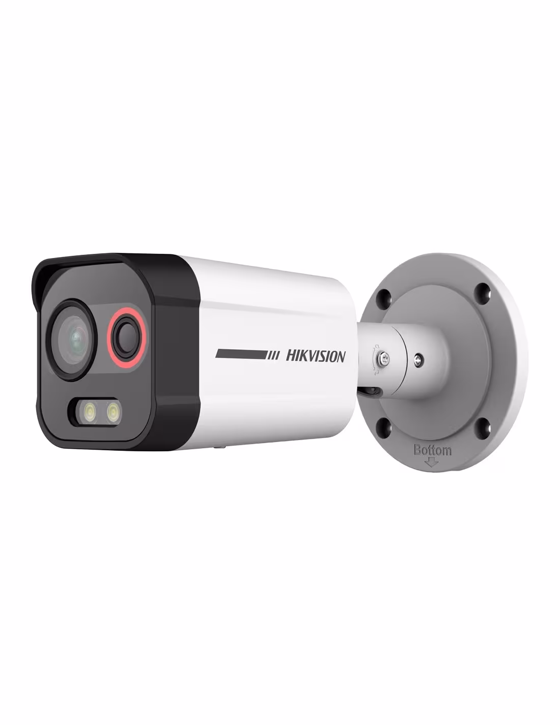 Câmara térmica Dual IP Hikvision Gama PRO - Sensor térmico 96x72 VOx | Lente 2.6 mm - Sensor ótico 1/1.8 4 Mpx | Lente 6 mm - Sensibilidade térmica 55mK | ColorVu - Deteção preventiva de incêndios e alarme - Alarmes | IP66 | IK10 | Áudio e luz dissuasores