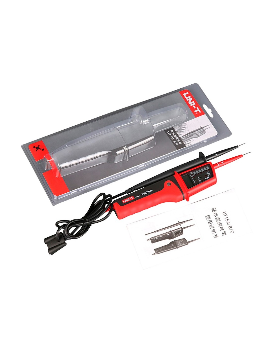 Medidor de tensão do tipo de lápis UT15C Uni-tend com display LCD - medição de tensão CA e DC - Aviso audível e LED visível para