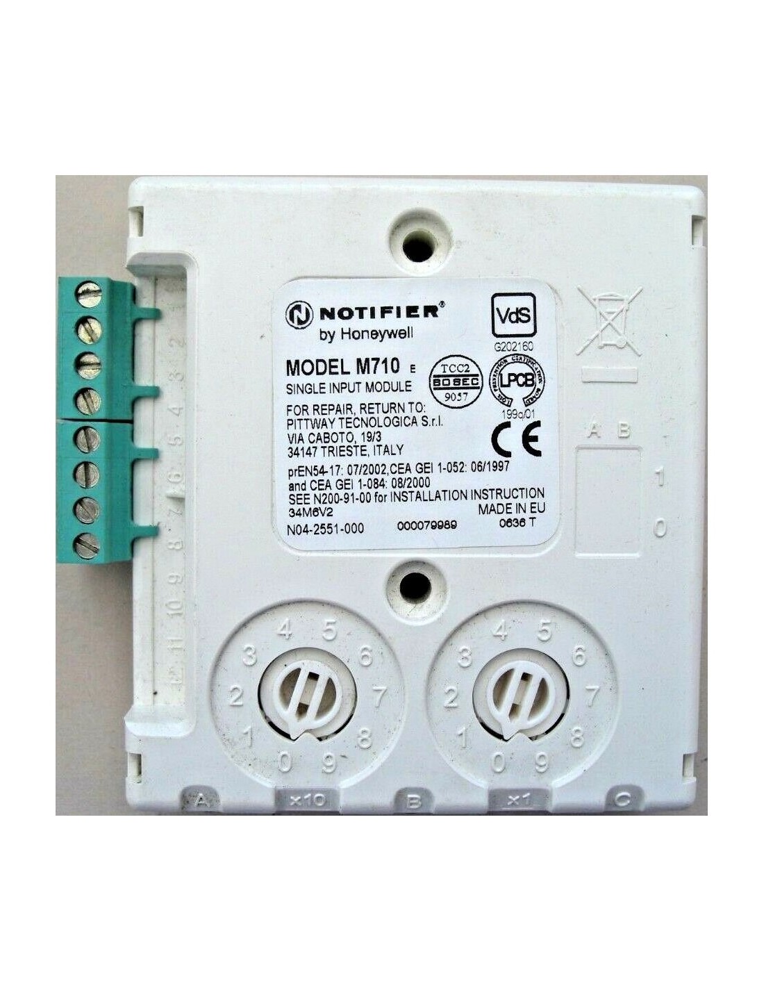 Monitor de módulo M710E Notifier endereçável com 1 entrada supervisionada. Protocolos clipe e opala
