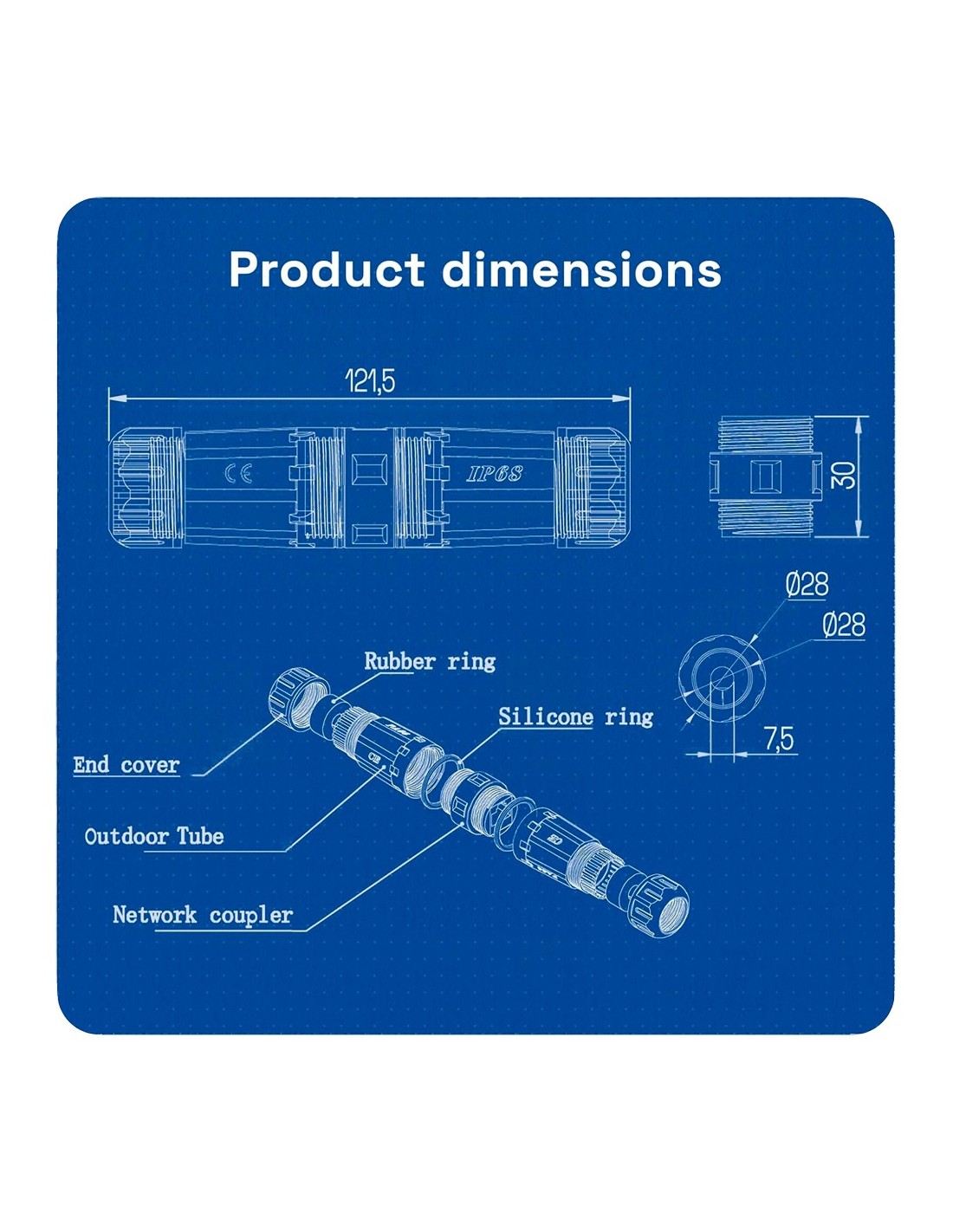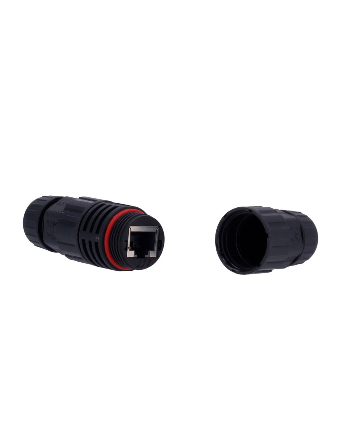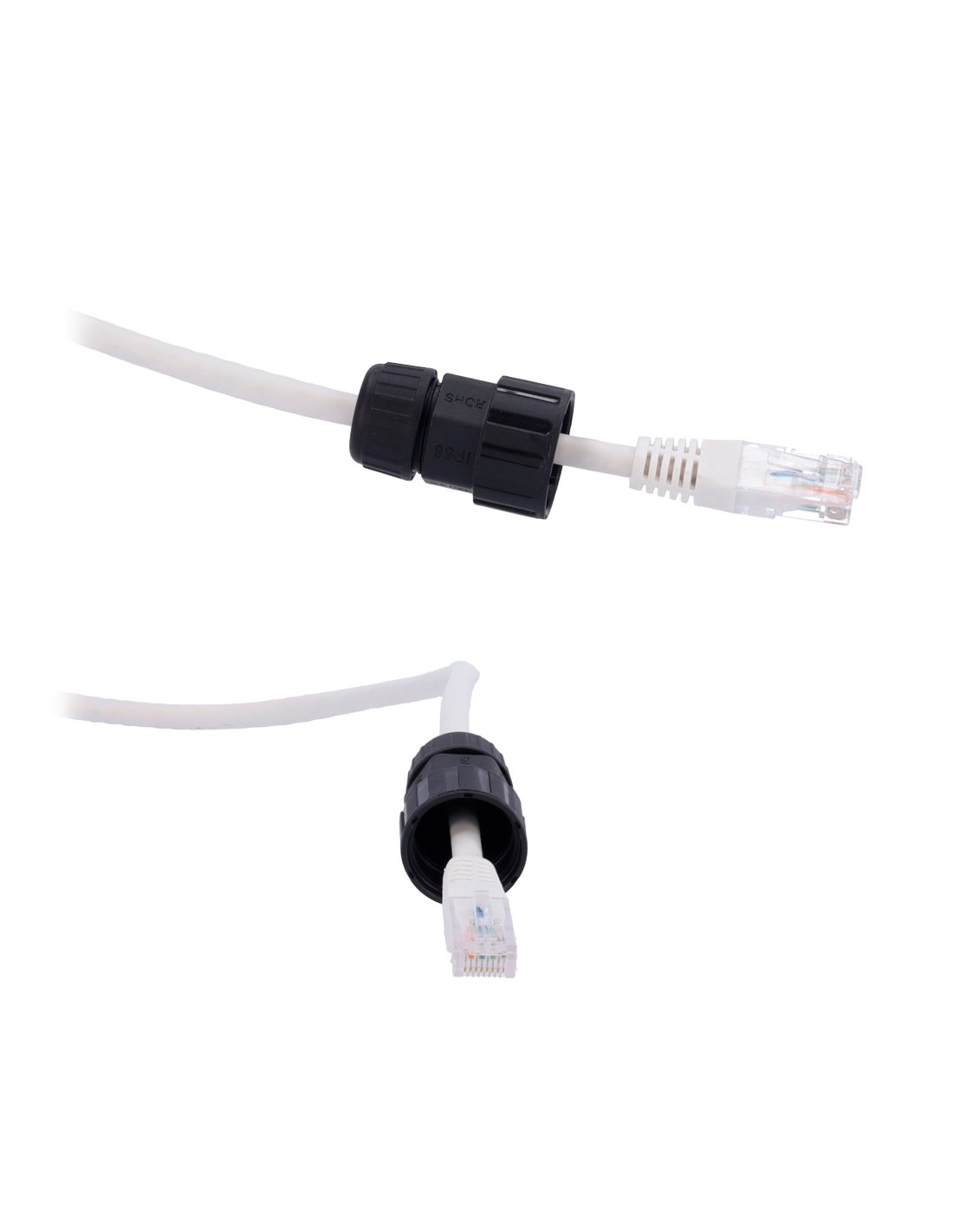 OEM com conector preto-branco-RJ45-Gland-W com encaixe industrial - Conector Entrada RJ45 - Conector de saída RJ45 - Cat UTP com