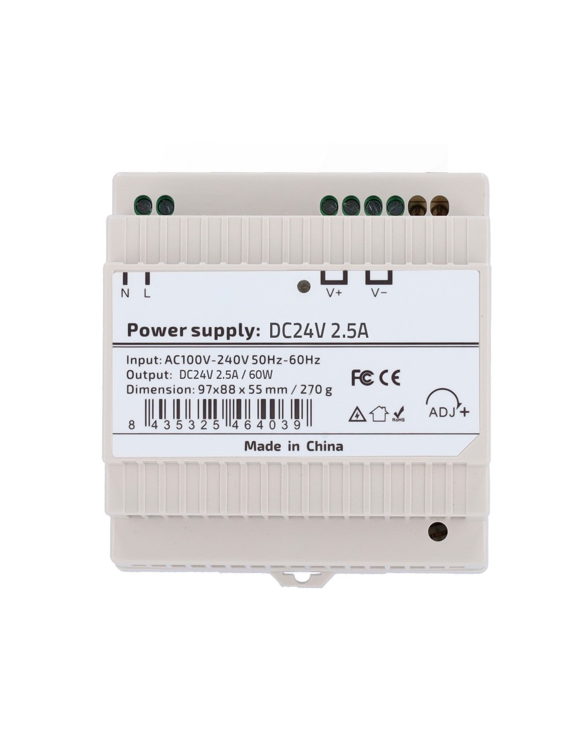 OEM DC24V2A5-DIN-P Fonte de alimentação - saída DC 24 V 2.5 A / 60 W - Entrada AC de tensão 100V ~ 240V 50Hz-60Hz - 97 (FO) x 5
