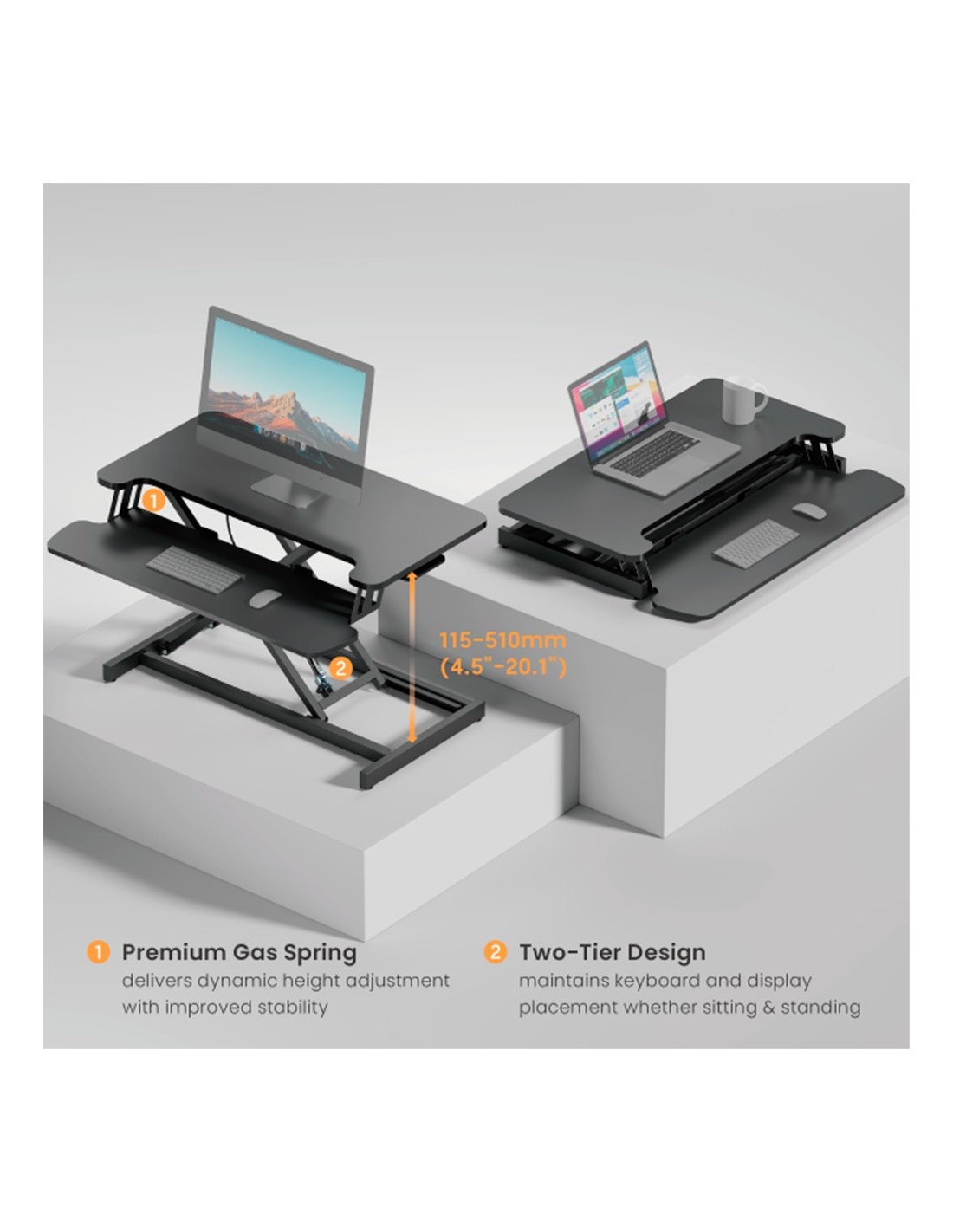 OEM DWS37-01 dobrável estação de trabalho - Peso suportado 15 kg - Altura ajustável 115 ~ 510 mm