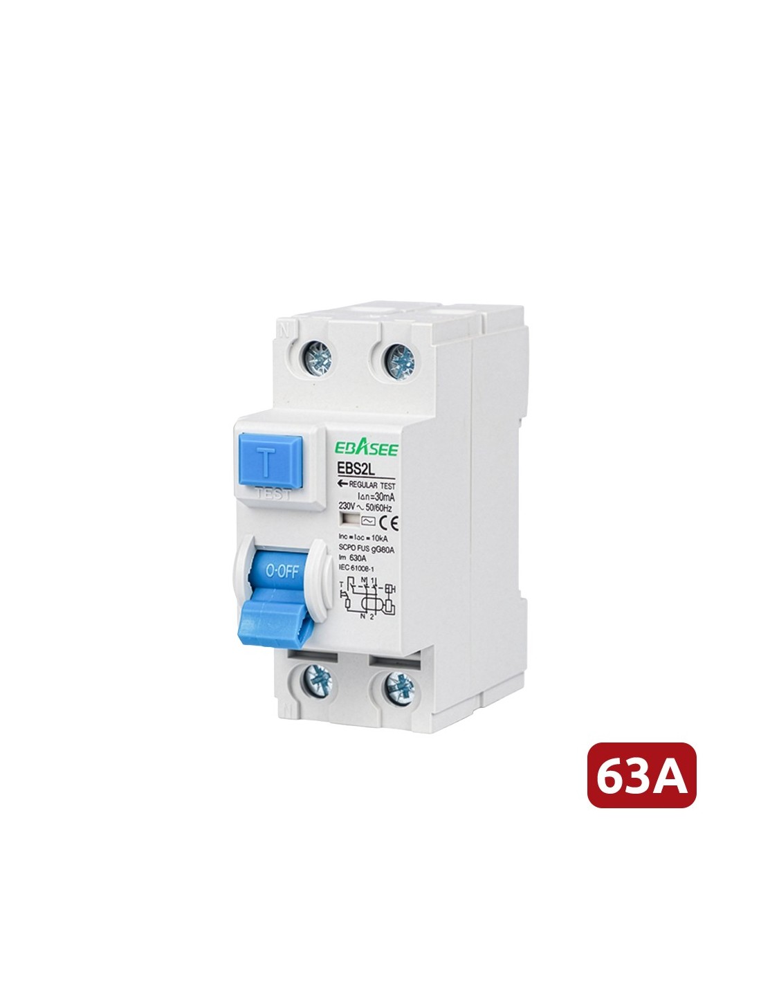 OEM EBS2L-63A-2P Interruptor diferencial - Corriente nominal 63A - 2 polos (instalaciones monofásicas) - Sensibilidad 30mA - Tip