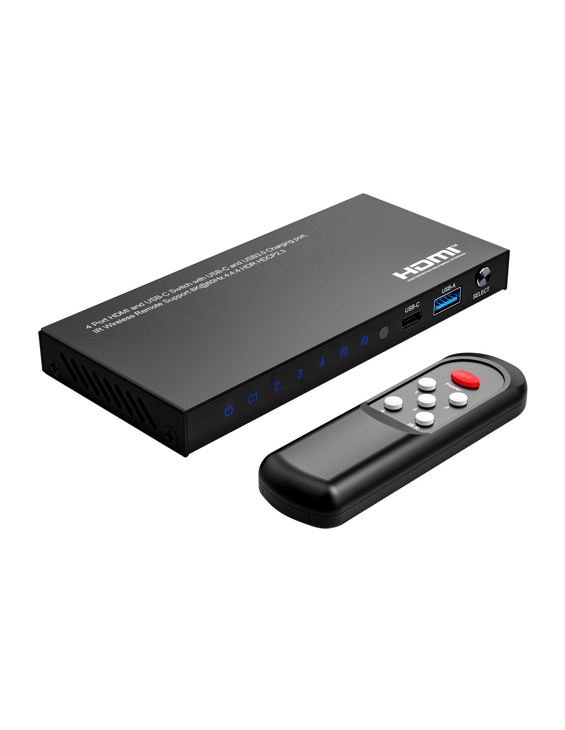 OEM HDMI-SW-4X1-8K60 HDMI / USB-C Switch - Permite 4: 1 - 3 Entradas HDMI - 1 Input da USB-C - 8K Resolution