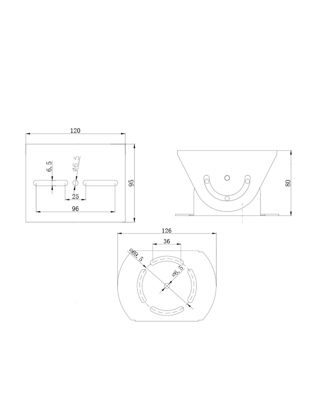 OEM SP6001 Articulação Cardan Universal - rotação vertical 85º - Dimensões da base: 80 (AL) x 126 (Ø) mm - Alumínio - Cor B
