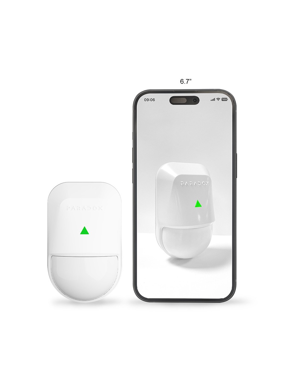 Paradoxo Paradoxo-254 PMD5M-P8U Detector PIR Sem Fio Bidirecional Supercompacto Duplo Elemento Óptico Único para Interiores.