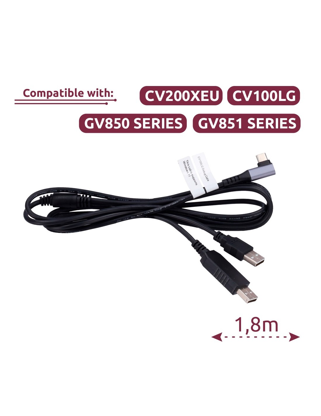 Cabo de depuração - Cabo de depuração 2 em 1 para configuração - L tipo-C para USB e USB tipo-C - Comprimento 1,8 m
